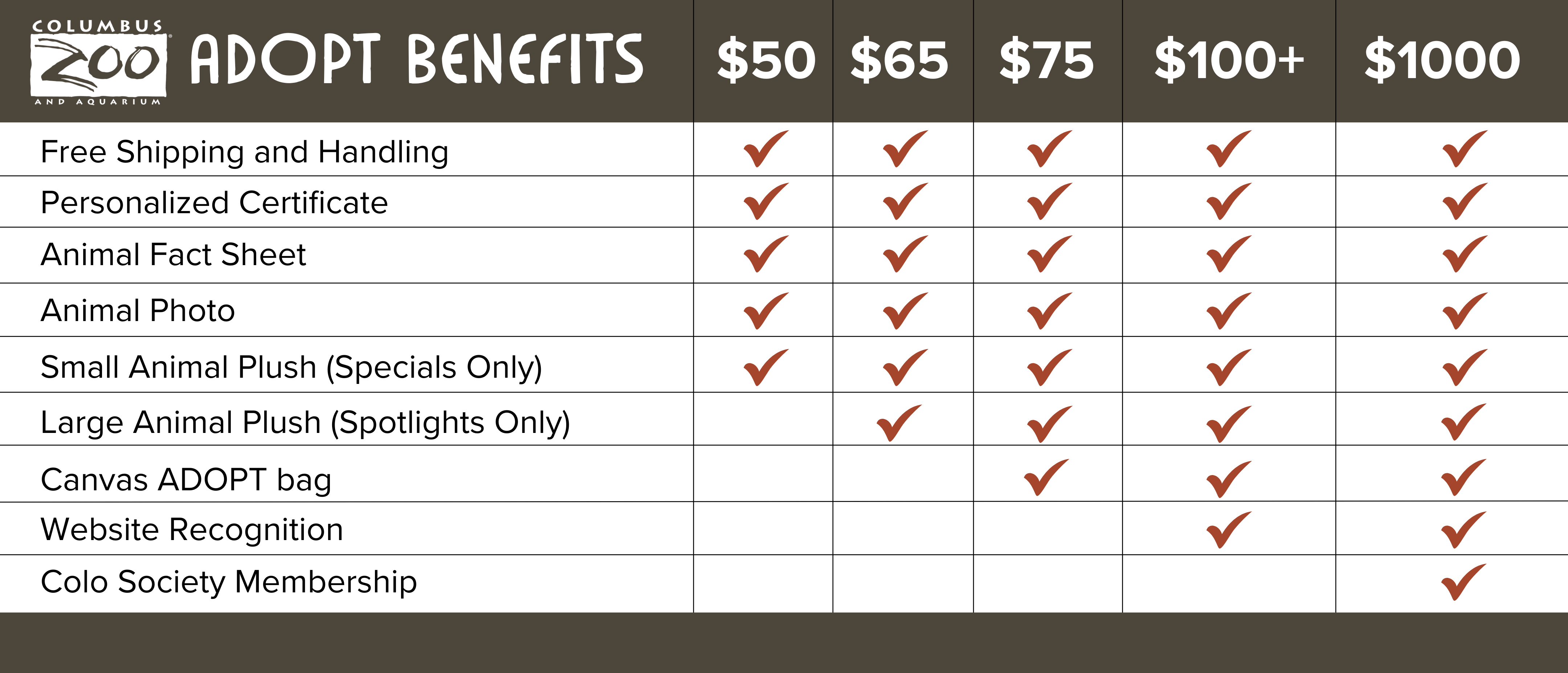 - 100% of your adoption donation will fund food and enrichment purchases for your favorite animal.