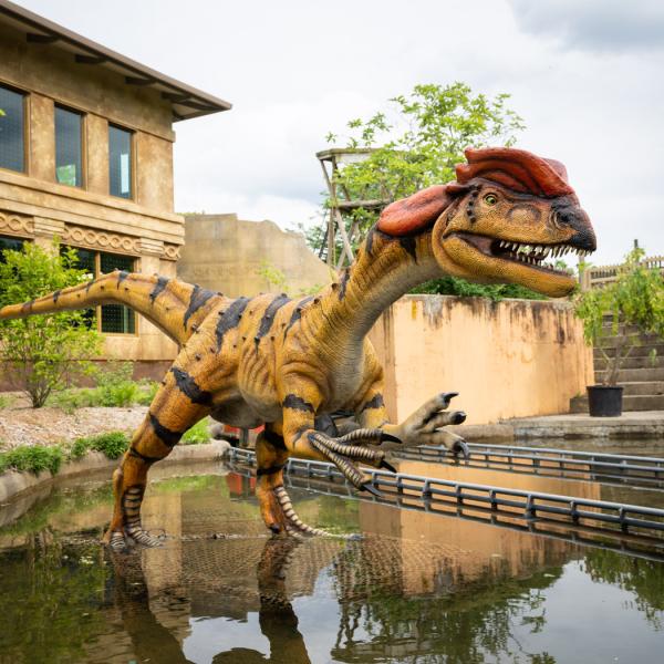 The dinosaurs were acquired from Billings Productions, Inc./The Dinosaur Company located in Allen, Texas. Billings Productions, Inc./The Dinosaur Company is the leading provider of animatronic dinosaurs for zoos, museums and theme parks in North America. They specialize in producing large, life-size animatronic dinosaurs that can withstand outdoor weather for traveling or permanent exhibits. Billings Productions Inc./The Dinosaur Company is a women owned, minority owned, small business with international clients. The company has been sharing incredible dinosaur experiences with the public since 2004. In addition to the dinosaurs acquired from Billings Productions, Inc./The Dinosaur Company, six animatronic, prehistoric creatures were custom made by the Zoo’s own Planning team.