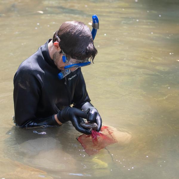 While the hellbenders are being cared for, teams tag each one with a Passive Integrated Transmitter (PIT), similar to a domesticated pet's microchip, so they can later identify it by scanning it. We know from research conducted after earlier releases that their survival is good and, over decades, we should be able to rebuild hellbender populations with this reintroduction process.