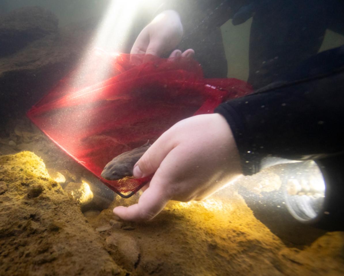 Over 2,000 hellbenders have been released in Ohio since 2012 by the Columbus Zoo and The Wilds, with over 350 hellbenders released just last year alone. In 2023, researchers also documented wild reproduction by previously released hellbenders for the first time—a major milestone for the program.